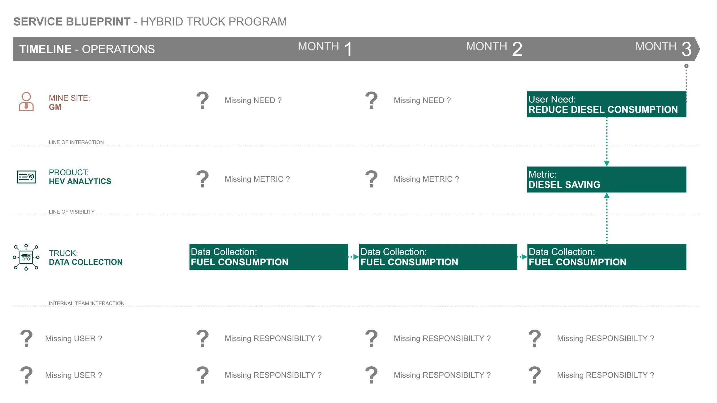 We have identified additional users and how their respective job responsibilities contribute to the Trial Program’s success. This allows us to plan the next round of user research and also better define the comprehensive service program needed to achieve success for the Hybrid Truck Program.
