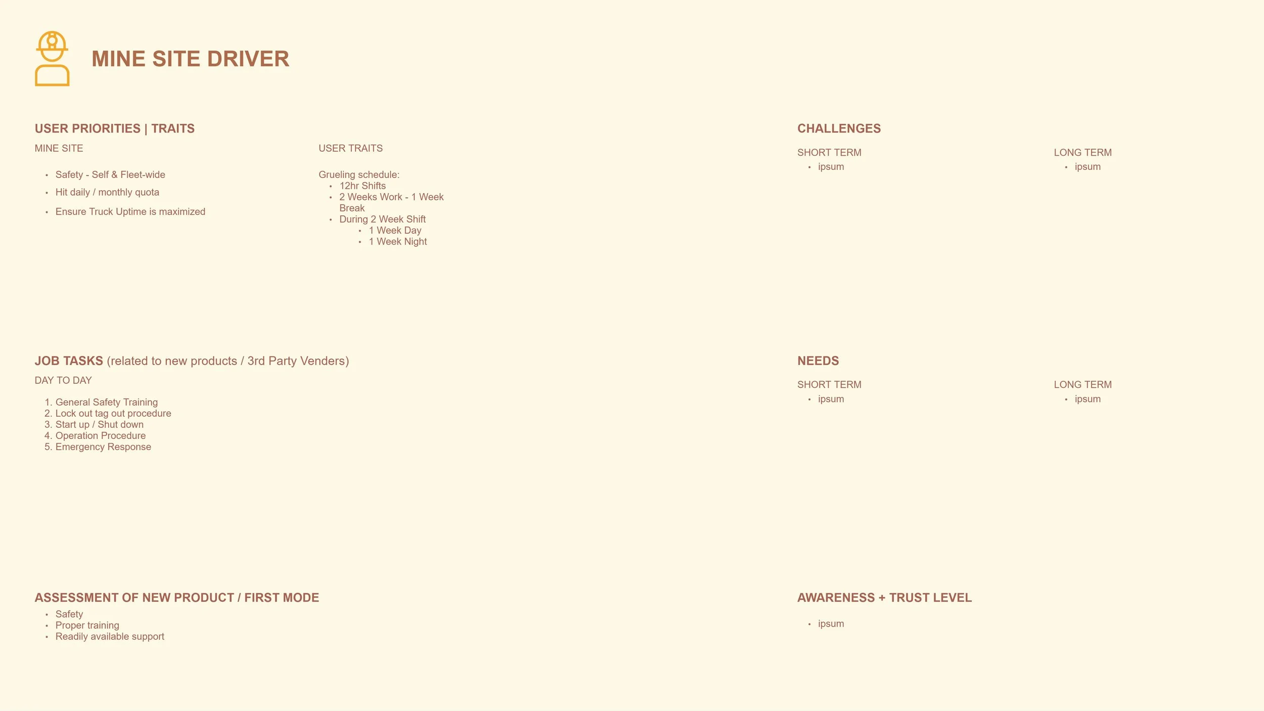 Lacking holistic understanding of our target user, the Mine Truck Driver.